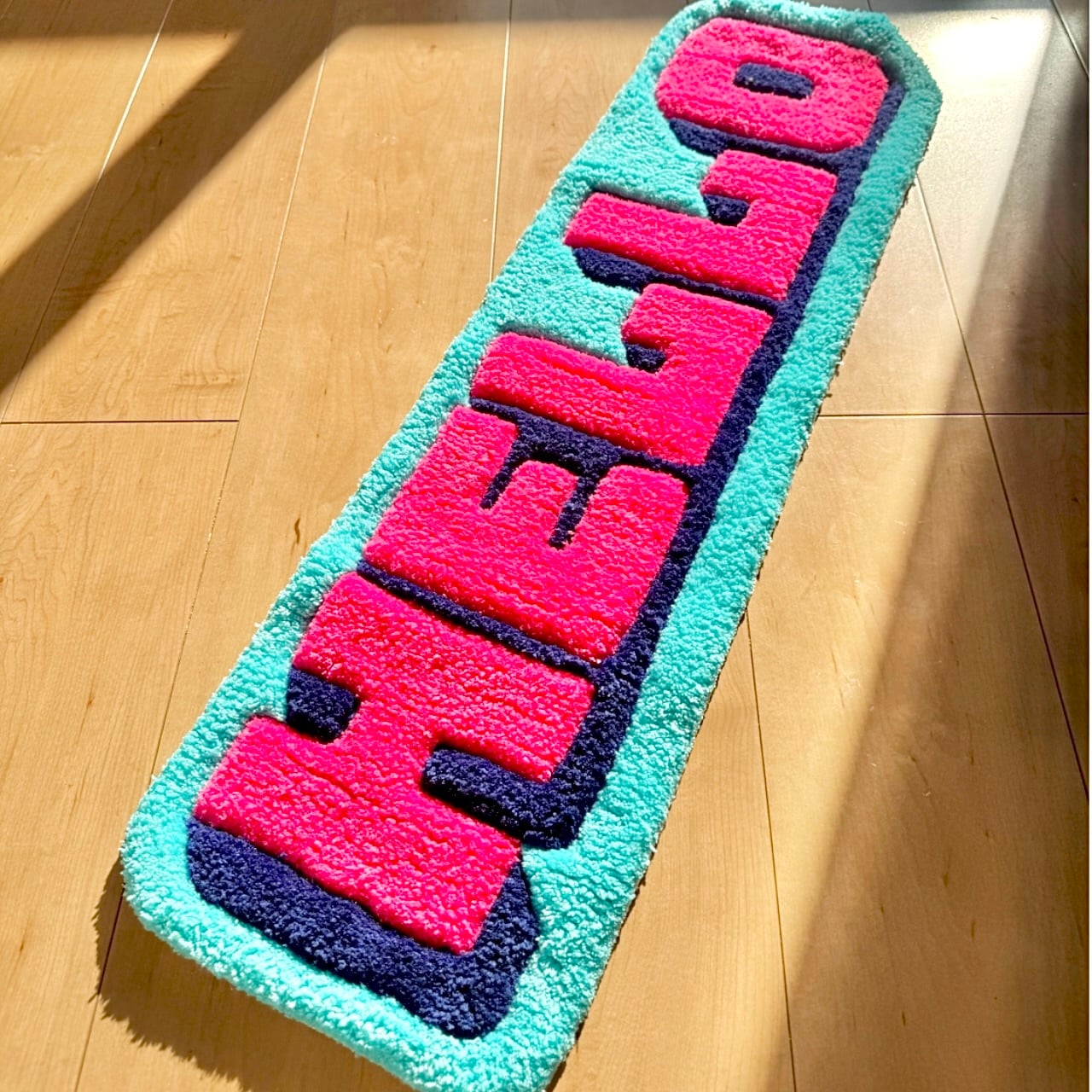HELLOの文字ラグ。
